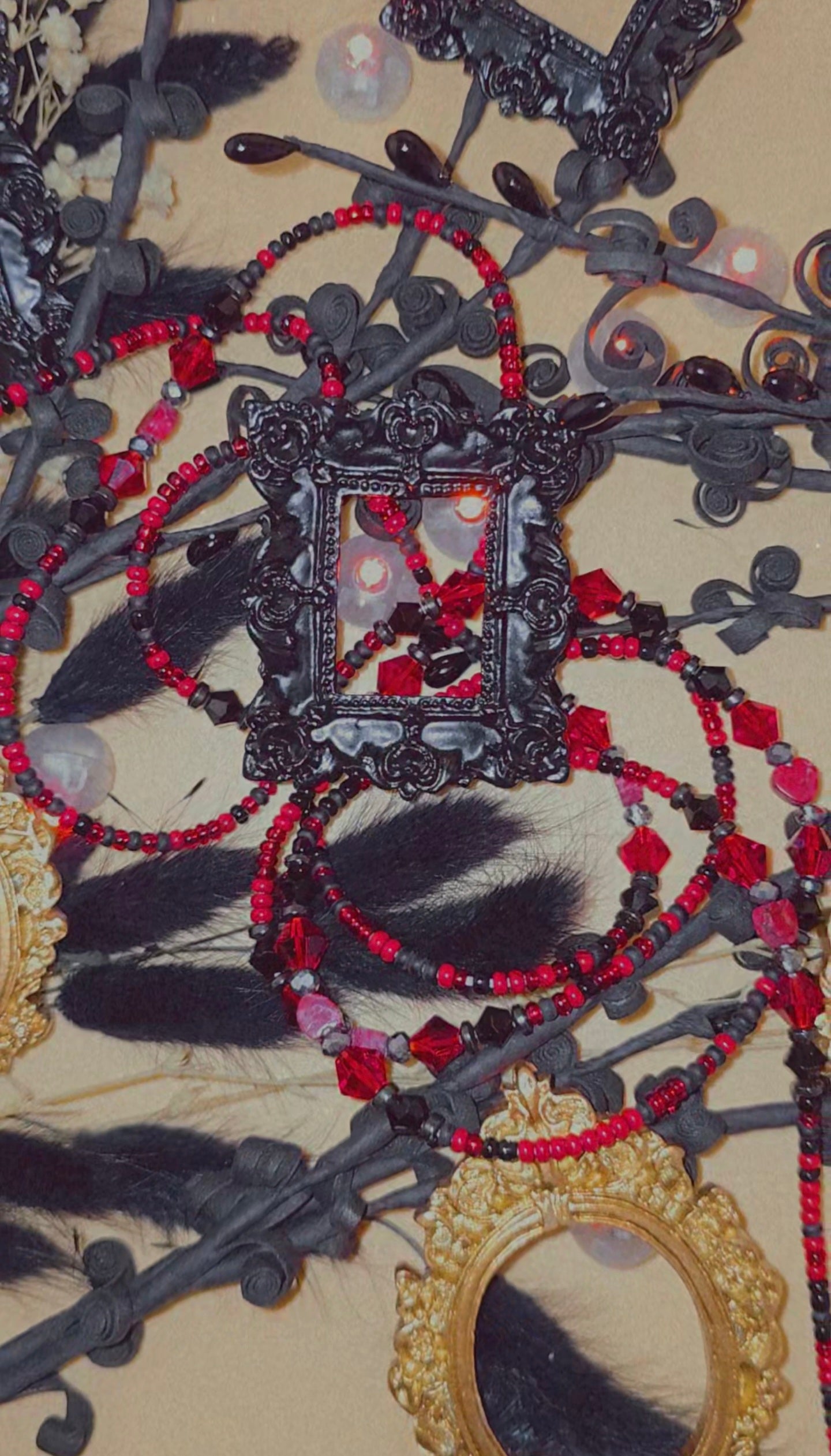 Vampire’s Kiss embodies the essence of dark desire — a handcrafted waistbead woven with fiery red crystals, matte black details, and grounding hematite. Each strand captures the moment where passion meets power, radiating confidence and magnetic allure.